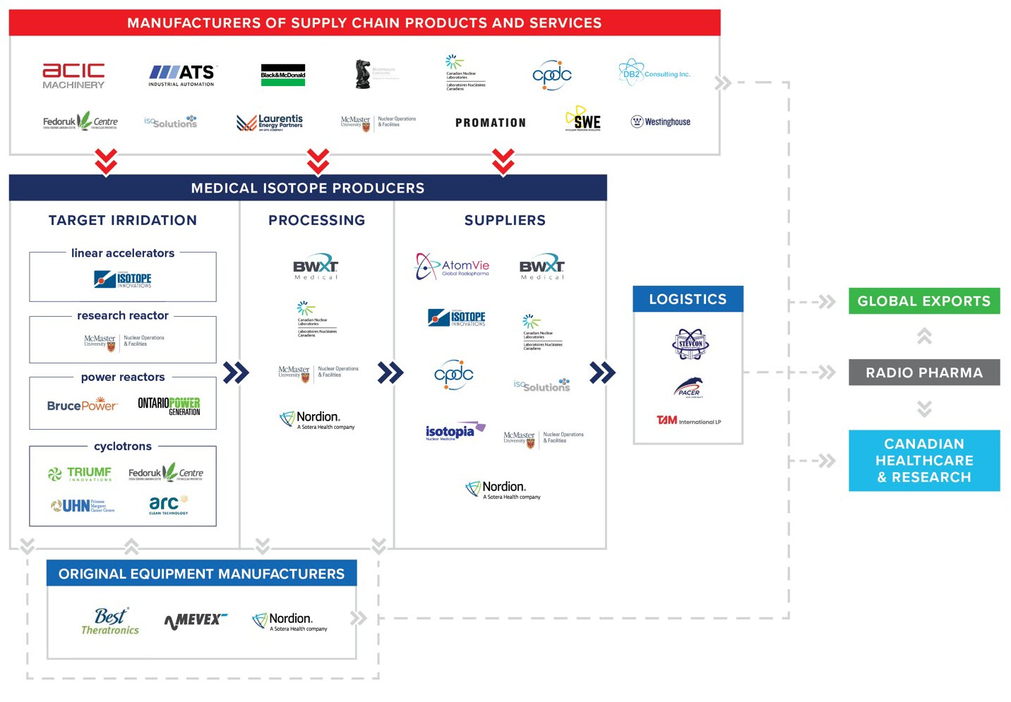 Nearly the complete supply chain for the production, processing and delivery of medical isotopes is represented in Canada